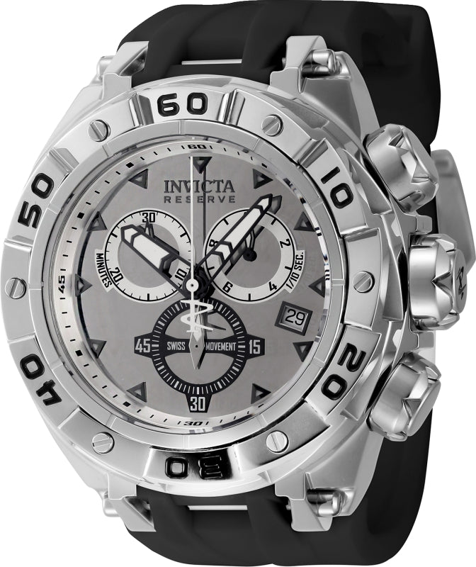 Band Material: Silicone, Band Tone: Black, Band Width: 33MM, Band Length: 200MM, Crown Type: Screw Down, Case Material: Stainless Steel, Case Tone: Steel, Case Size [mm]: 52.7, Color of Hands: Gunmetal, Luminous, Crystal Type: Flame Fusion, Bezel Material: Stainless Steel, Dial Material: Metal, Dial Color: Silver .Purchasing these parts and having a non-authorized repair center open your watch voids all manufacturing warranties. Invicta cannot guarantee the quality standards of an altered timepiece, the standard 3-year limited warranty on Invicta timepieces shall be invalid if the timepiece is serviced at any time by an unauthorized repair center. This includes battery replacements, which must be done at an Invicta authorized repair center in order to maintain the eligibility of the warranty. Please follow the link below to learn more about Invicta's warranty.https://cdn.invictawatch.com/www/files/invicta-warranty-2018.pdf