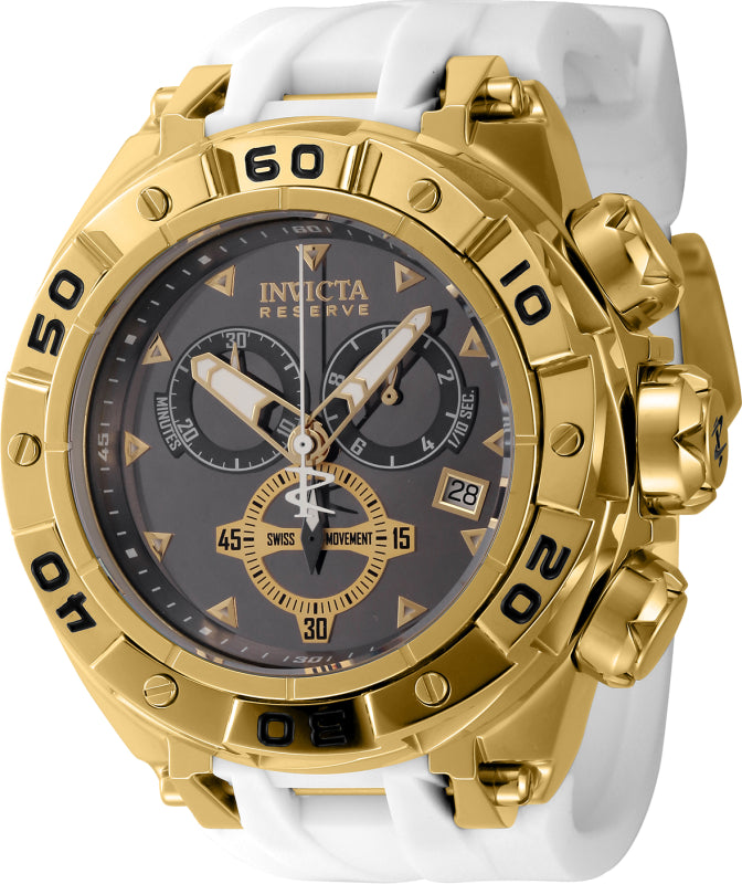 Band Material: Silicone, Band Tone: White, Band Width: 33MM, Band Length: 200MM, Crown Type: Screw Down, Case Material: Stainless Steel, Case Tone: Black, Gold, Case Size [mm]: 52.7, Color of Hands: Gunmetal, Luminous, Gold, Crystal Type: Flame Fusion, Bezel Material: Stainless Steel, Dial Material: Metal, Dial Color: Grey .Purchasing these parts and having a non-authorized repair center open your watch voids all manufacturing warranties. Invicta cannot guarantee the quality standards of an altered timepiece, the standard 3-year limited warranty on Invicta timepieces shall be invalid if the timepiece is serviced at any time by an unauthorized repair center. This includes battery replacements, which must be done at an Invicta authorized repair center in order to maintain the eligibility of the warranty. Please follow the link below to learn more about Invicta's warranty.https://cdn.invictawatch.com/www/files/invicta-warranty-2018.pdf