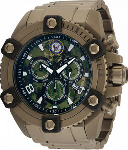 Band Material: Stainless Steel, Band Tone: Khaki, Band Width: 31MM, Band Length: 225MM, Crown Type: Push, Case Material: Stainless Steel, Case Tone: Khaki, Case Size [mm]: 56, Color of Hands: Luminous, Black, Crystal Type: Flame Fusion, Bezel Material: Stainless Steel, Dial Material: Metal, Dial Color: Camouflage .Purchasing these parts and having a non-authorized repair center open your watch voids all manufacturing warranties. Invicta cannot guarantee the quality standards of an altered timepiece, the standard 3-year limited warranty on Invicta timepieces shall be invalid if the timepiece is serviced at any time by an unauthorized repair center. This includes battery replacements, which must be done at an Invicta authorized repair center in order to maintain the eligibility of the warranty. Please follow the link below to learn more about Invicta's warranty.https://cdn.invictawatch.com/www/files/invicta-warranty-2018.pdf