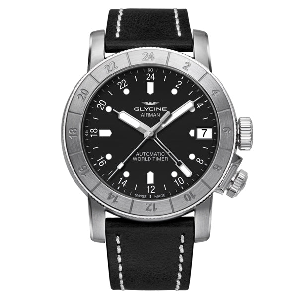 Band for Glycine Airman GL0059, Band Material: Leather Band Color: Black Band Width (mm): 24 Band Length (mm): 200 Buckle Type: Regular
