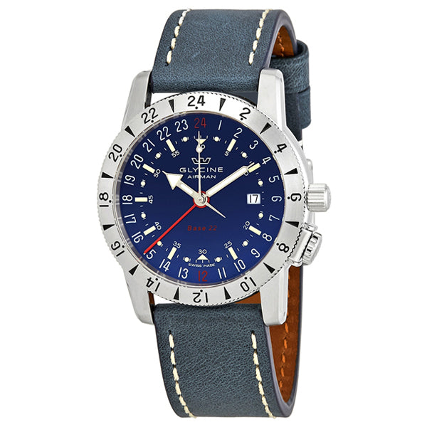 Band for Glycine Airman GL0203, Band Material: Leather Band Color: Blue Band Width (mm): 22 Band Length (mm): 200 Buckle Type: Regular