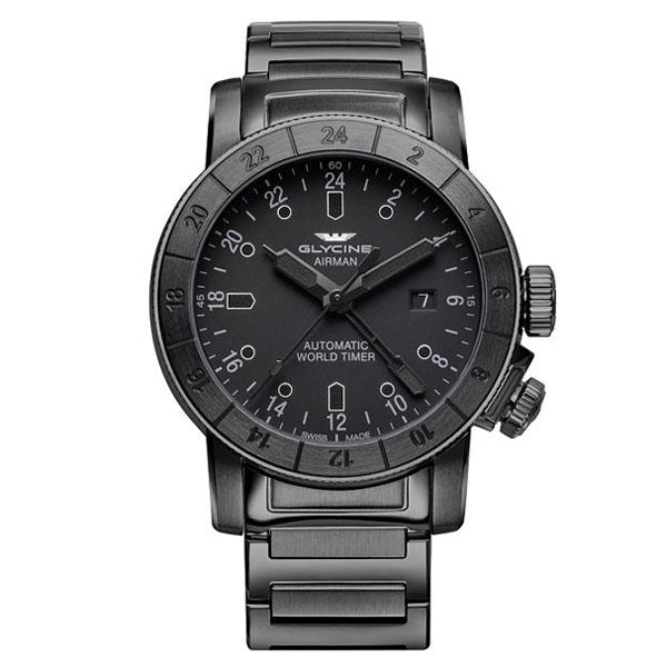 Band for Glycine Airman GL0153, Band Material: Stainless Steel, Band Color: Black, Band Width: 22, Band Length: 196.3, Buckle Type: Butterfly