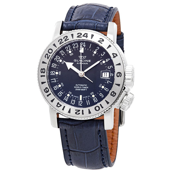 Band for Glycine Airman GL0220, Band Material: Leather Band Color: Blue Band Width (mm): 20 Band Length (mm): 200 Buckle Type: Regular