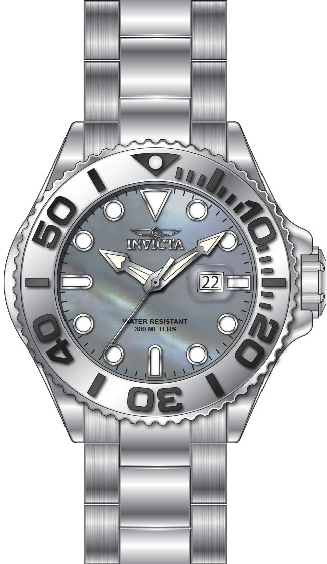 Band Material: Stainless Steel, Band Tone: Steel, Band Width: 24MM, Band Length: 210MM, Crown Type: Screw Down, Case Material: Stainless Steel,Aluminum, Case Tone: Black,Silver,Steel, Case Size [mm]: 52.00, Case Back: Solid screwed, Material of Hands: Metal, Color of Hands: Silver,Luminous, Crystal Type: Mineral, Bezel Material: Stainless Steel,Aluminum, Dial Material: Metal,Mother of Pearl,Oyster, Dial Color: Platinum, Dial Pattern: None .Purchasing these parts and having a non-authorized repair center open your watch voids all manufacturing warranties. Invicta cannot guarantee the quality standards of an altered timepiece, the standard 3-year limited warranty on Invicta timepieces shall be invalid if the timepiece is serviced at any time by an unauthorized repair center. This includes battery replacements, which must be done at an Invicta authorized repair center in order to maintain the eligibility of the warranty. Please follow the link below to learn more about Invicta's warranty.https://cdn.invictawatch.com/www/files/invicta-warranty-2018.pdf