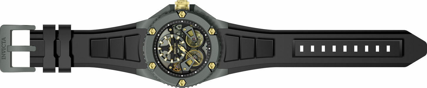 Band Material: Silicone, Band Tone: Black, Band Size [mm]: 34, Band Length [mm]: 220, Buckle Type: Buckle . Please note that bands do not ship with spring bars or T bars. If you need these parts, please add them to your cart with the corresponding part sku.