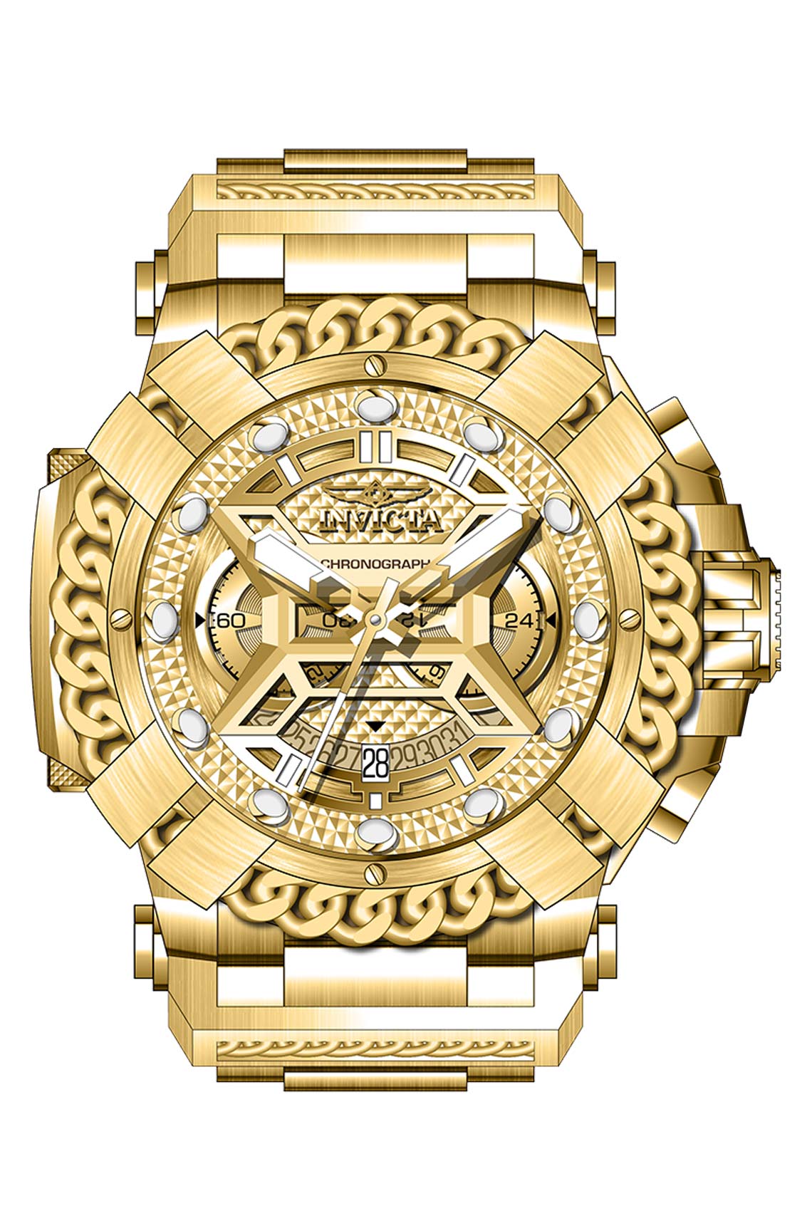 Band Material: Stainless Steel, Band Tone: Gold, Band Size [mm]: 26, Band Length [mm]: 190, Buckle Type: Fold over safety . Please note that bands do not ship with spring bars or T bars. If you need these parts, please add them to your cart with the corresponding part sku.
