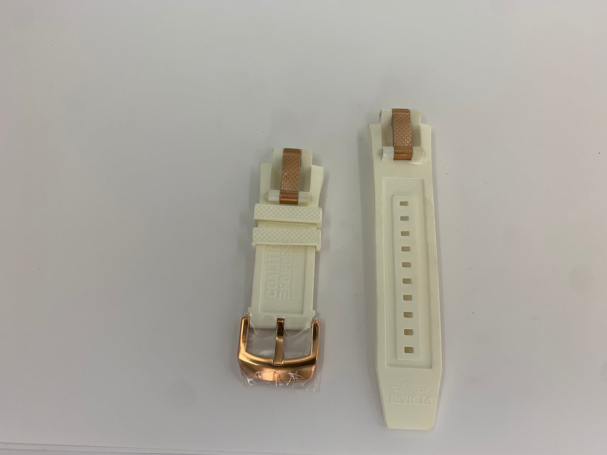 Band For Men Invicta Coalition Forces 11661, Band Material Polyurethane or Canvas Leather, Band Color Rose Gold, white, or Tan Band Width 30X26 MM, Band Length 195 MM, Buckle Type Diver, Clasp Type. Please note that bands do not ship with spring bars or T bars. If you need these parts, please add them to your cart with the corresponding part sku.
