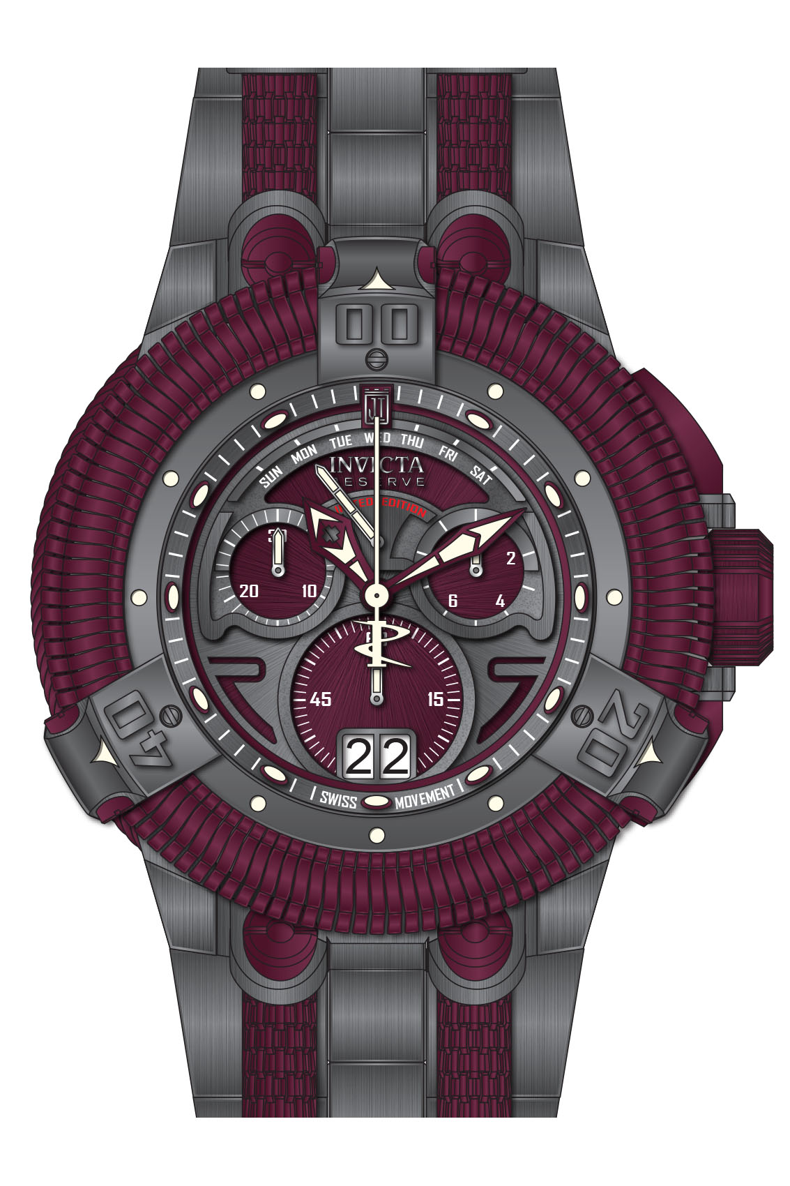 Band Material: Stainless Steel, Band Tone: Titanium,Burgundy, Band Size [mm]: 33.5, Band Length [mm]: 210, Buckle Type: Fold over safety . Please note that bands do not ship with spring bars or T bars. If you need these parts, please add them to your cart with the corresponding part sku.