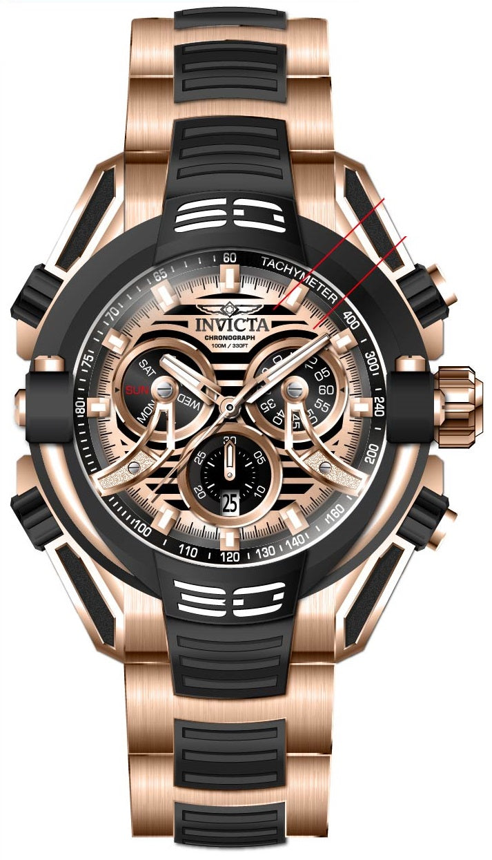 Band Material: Stainless Steel, Band Tone: Rose Gold,Black, Band Size [mm]: 26, Band Length [mm]: 190, Buckle Type: Fold over safety . Please note that bands do not ship with spring bars or T bars. If you need these parts, please add them to your cart with the corresponding part sku.