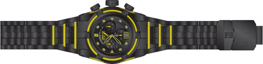 Band For Men Invicta JT 14423, Band Material Stainless Steel, Band Color Black, Yellow, Band Width 36.8 MM, Band Length 187 MM, Buckle Type Diver, Clasp Type Deployment, Safety. Please note that bands do not ship with spring bars or T bars. If you need these parts, please add them to your cart with the corresponding part sku.