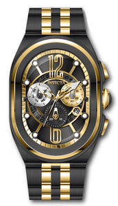 Band Material: Stainless Steel, Band Tone: Gold,Black, Band Width: 30MM, Band Length: 190MM, Crown Type: Push, Case Material: Stainless Steel, Case Tone: Black, Case Size [mm]: 46, Case Back: Solid, Material of Hands: Metal, Color of Hands: Gold, Crystal Type: Flame Fusion, Bezel Material: Stainless Steel, Dial Material: Metal, Dial Color: Black .Purchasing these parts and having a non-authorized repair center open your watch voids all manufacturing warranties. Invicta cannot guarantee the quality standards of an altered timepiece, the standard 3-year limited warranty on Invicta timepieces shall be invalid if the timepiece is serviced at any time by an unauthorized repair center. This includes battery replacements, which must be done at an Invicta authorized repair center in order to maintain the eligibility of the warranty. Please follow the link below to learn more about Invicta's warranty.https://cdn.invictawatch.com/www/files/invicta-warranty-2018.pdf