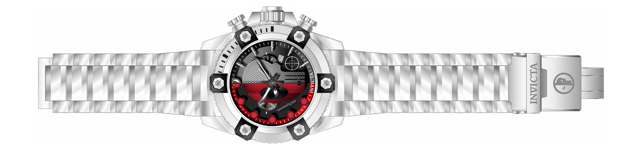 Band Material: Stainless Steel, Band Tone: Steel, Band Width: 31MM, Band Length: 230MM, Crown Type: Push, Case Material: Stainless Steel, Case Tone: Steel, Case Size [mm]: 56, Case Back: Solid, Material of Hands: Metal, Color of Hands: Black,Luminous, Crystal Type: Flame Fusion, Bezel Material: Stainless Steel, Dial Material: Metal, Dial Color: Black,Silver,Red, Dial Pattern: Textured Pattern .Purchasing these parts and having a non-authorized repair center open your watch voids all manufacturing warranties. Invicta cannot guarantee the quality standards of an altered timepiece, the standard 3-year limited warranty on Invicta timepieces shall be invalid if the timepiece is serviced at any time by an unauthorized repair center. This includes battery replacements, which must be done at an Invicta authorized repair center in order to maintain the eligibility of the warranty. Please follow the link below to learn more about Invicta's warranty.https://cdn.invictawatch.com/www/files/invicta-warranty-2018.pdf