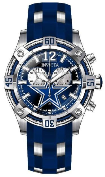 Band Material: Silicone, Stainless Steel, Band Tone: Blue, Steel, Band Width: 26MM, Band Length: 210MM, Crown Type: Push, Case Material: Stainless Steel, Case Tone: Silver, Case Size [mm]: 52, Color of Hands: Silver, White, Crystal Type: Flame Fusion, Bezel Material: Cable, Stainless Steel, Dial Material: Metal, Dial Color: Silver, White, Blue .Purchasing these parts and having a non-authorized repair center open your watch voids all manufacturing warranties. Invicta cannot guarantee the quality standards of an altered timepiece, the standard 3-year limited warranty on Invicta timepieces shall be invalid if the timepiece is serviced at any time by an unauthorized repair center. This includes battery replacements, which must be done at an Invicta authorized repair center in order to maintain the eligibility of the warranty. Please follow the link below to learn more about Invicta's warranty.https://cdn.invictawatch.com/www/files/invicta-warranty-2018.pdf