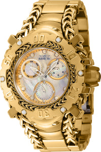 Band Material: Stainless Steel, Band Tone: Gold, Band Width: 28.0MM, Band Length: 185MM, Crown Type: Screw Down, Case Material: Stainless Steel, Case Tone: Gold, Case Size [mm]: 43.20, Color of Hands: Luminous, Silver, Crystal Type: Flame Fusion, Bezel Material: Stainless Steel, Dial Material: Oyster, Mother of Pearl, Metal, Dial Color: Gold .Purchasing these parts and having a non-authorized repair center open your watch voids all manufacturing warranties. Invicta cannot guarantee the quality standards of an altered timepiece, the standard 3-year limited warranty on Invicta timepieces shall be invalid if the timepiece is serviced at any time by an unauthorized repair center. This includes battery replacements, which must be done at an Invicta authorized repair center in order to maintain the eligibility of the warranty. Please follow the link below to learn more about Invicta's warranty.https://cdn.invictawatch.com/www/files/invicta-warranty-2018.pdf
