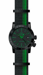 Band Material : Nylon, Band Tone : Black,Green, Band Size [mm] : 22, Band Length [mm] : 220, Buckle Type : Buckle, Crown Type : Screw Down, Case Material : Stainless Steel, Case Tone : Black, Case Size [mm] : 42, Case Back : Solid, Material of Hands : Metal, Color of Hands : Green,Luminous, Crystal Type : Sapphire, Bezel Material :Stainless Steel, Dial Material : Metal, Dial Color : Black.Purchasing these parts and having a non-authorized repair center open your watch voids all manufacturing warranties. Invicta cannot guarantee the quality standards of an altered timepiece, the standard 3-year limited warranty on Invicta timepieces shall be invalid if the timepiece is serviced at any time by an unauthorized repair center. This includes battery replacements, which must be done at an Invicta authorized repair center in order to maintain the eligibility of the warranty. Please follow the link below to learn more about Invicta's warranty.https://cdn.invictawatch.com/www/files/invicta-warranty-2018.pdf