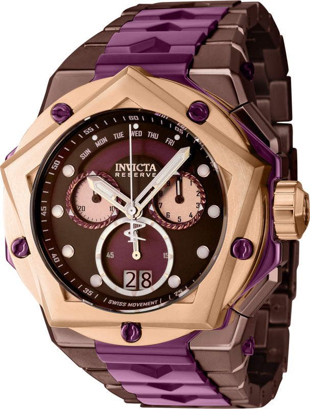 Band Material: Stainless Steel, Band Tone: Burgundy, Brown, Band Width: 34.70MM, Band Length: 210MM, Crown Type: Screw Down, Case Material: Stainless Steel, Case Tone: Burgundy, Brown, Rose Gold, Case Size [mm]: 54.0, Color of Hands: Burgundy, Luminous, Rose Gold, Crystal Type: Flame Fusion, Bezel Material: Stainless Steel, Dial Material: Metal, Dial Color: Burgundy, Brown .Purchasing these parts and having a non-authorized repair center open your watch voids all manufacturing warranties. Invicta cannot guarantee the quality standards of an altered timepiece, the standard 3-year limited warranty on Invicta timepieces shall be invalid if the timepiece is serviced at any time by an unauthorized repair center. This includes battery replacements, which must be done at an Invicta authorized repair center in order to maintain the eligibility of the warranty. Please follow the link below to learn more about Invicta's warranty.https://cdn.invictawatch.com/www/files/invicta-warranty-2018.pdf