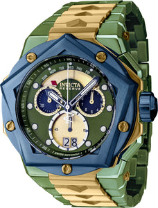 Band Material: Stainless Steel, Band Tone: Mint, Gold, Band Width: 34.70MM, Band Length: 210MM, Crown Type: Screw Down, Case Material: Stainless Steel, Case Tone: Mint, Dark Blue, Gold, Case Size [mm]: 54.0, Color of Hands: Luminous, Gold, Blue, Crystal Type: Flame Fusion, Bezel Material: Stainless Steel, Dial Material: Metal, Dial Color: Dark Blue, Green, Gold .Purchasing these parts and having a non-authorized repair center open your watch voids all manufacturing warranties. Invicta cannot guarantee the quality standards of an altered timepiece, the standard 3-year limited warranty on Invicta timepieces shall be invalid if the timepiece is serviced at any time by an unauthorized repair center. This includes battery replacements, which must be done at an Invicta authorized repair center in order to maintain the eligibility of the warranty. Please follow the link below to learn more about Invicta's warranty.https://cdn.invictawatch.com/www/files/invicta-warranty-2018.pdf