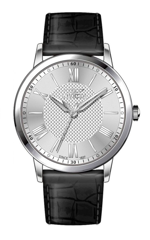 Band Material: Leather, Band Tone: Black, Band Width: 22MM, Band Length: 210MM, Crown Type: Push, Case Material: Stainless Steel, Case Tone: Steel, Case Size [mm]: 43, Case Back: Solid, Material of Hands: Brass, Color of Hands: Silver, Crystal Type: Mineral, Bezel Material: None, Dial Material: Brass, Dial Color: Silver, Dial Pattern: Sun-ray Finish .Purchasing these parts and having a non-authorized repair center open your watch voids all manufacturing warranties. Invicta cannot guarantee the quality standards of an altered timepiece, the standard 3-year limited warranty on Invicta timepieces shall be invalid if the timepiece is serviced at any time by an unauthorized repair center. This includes battery replacements, which must be done at an Invicta authorized repair center in order to maintain the eligibility of the warranty. Please follow the link below to learn more about Invicta's warranty.https://cdn.invictawatch.com/www/files/invicta-warranty-2018.pdf
