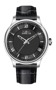 Band Material: Leather, Band Tone: Black, Band Width: 20MM, Band Length: 210MM, Crown Type: Push, Case Material: Stainless Steel, Case Tone: Steel, Case Size [mm]: 43, Case Back: Solid, Material of Hands: Brass, Color of Hands: Silver, Crystal Type: Mineral, Bezel Material: None, Dial Material: Brass, Dial Color: Black, Dial Pattern: Sun-ray Finish .Purchasing these parts and having a non-authorized repair center open your watch voids all manufacturing warranties. Invicta cannot guarantee the quality standards of an altered timepiece, the standard 3-year limited warranty on Invicta timepieces shall be invalid if the timepiece is serviced at any time by an unauthorized repair center. This includes battery replacements, which must be done at an Invicta authorized repair center in order to maintain the eligibility of the warranty. Please follow the link below to learn more about Invicta's warranty.https://cdn.invictawatch.com/www/files/invicta-warranty-2018.pdf