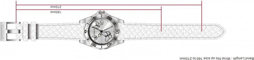 Individual Spare PARTS For Lady Invicta Pro Diver 12515, Band Material Leather, Band Color White, Band Width 18 MM, Band Length 195 MM, Buckle Type Regular, Clasp Type Regular, Crown Type Push, Case Material Stainless Steel, Case Tone Steel, Case Size (mm) 38, Case Back Solid, Material of Hands Metal, Color of Hands Black, Luminous, Crystal Type Mineral, Bezel Material Stainless Steel, Dial Material Metal, Dial Color Metallic White, Dial Pattern SunrayPurchasing these parts and having a non-authorized repair center open your watch voids all manufacturing warranties. Invicta cannot guarantee the quality standards of an altered timepiece, the standard 3-year limited warranty on Invicta timepieces shall be invalid if the timepiece is serviced at any time by an unauthorized repair center. This includes battery replacements, which must be done at an Invicta authorized repair center in order to maintain the eligibility of the warranty. Please follow the link below to learn more about Invicta's warranty.https://cdn.invictawatch.com/www/files/invicta-warranty-2018.pdf