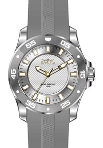 Band Material: Silicone, Band Tone: Grey, Band Width: 26MM, Band Length: 210MM, Crown Type: Push, Case Material: Stainless Steel, Case Tone: Steel, Case Size [mm]: 50, Case Back: Solid, Material of Hands: Metal, Color of Hands: Gold, Crystal Type: Flame Fusion, Bezel Material: Stainless Steel,Aluminum, Dial Material: Metal, Dial Color: Silver, Dial Pattern: Textured Pattern .Purchasing these parts and having a non-authorized repair center open your watch voids all manufacturing warranties. Invicta cannot guarantee the quality standards of an altered timepiece, the standard 3-year limited warranty on Invicta timepieces shall be invalid if the timepiece is serviced at any time by an unauthorized repair center. This includes battery replacements, which must be done at an Invicta authorized repair center in order to maintain the eligibility of the warranty. Please follow the link below to learn more about Invicta's warranty.https://cdn.invictawatch.com/www/files/invicta-warranty-2018.pdf