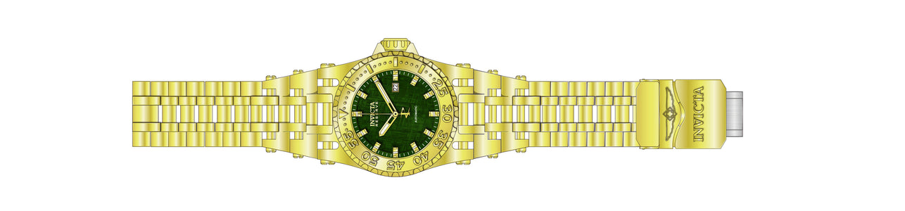 INVICTA Reserve Men 50mm Stainless Steel Gold Green dial NH35A Automatic , Band Material: Stainless Steel, Band Tone: Gold, Band Size [mm]: 35.6, Band Length [mm]: 210, Buckle Type: Fold over safety , Crown Type : Screw Down, Case Material : Stainless Steel, Case Tone : Gold, Case Size (mm) : 50, Case Back : Exhibition, Material of Hands : Metal, Color of Hands : Gold,Luminous, Crystal Type : Flame Fusion, Bezel Material : Stainless Steel, Dial Material : Metal, Dial Color : Green, Dial Pattern : Textured Pattern .Purchasing these parts and having a non-authorized repair center open your watch voids all manufacturing warranties. Invicta cannot guarantee the quality standards of an altered timepiece, the standard 3-year limited warranty on Invicta timepieces shall be invalid if the timepiece is serviced at any time by an unauthorized repair center. This includes battery replacements, which must be done at an Invicta authorized repair center in order to maintain the eligibility of the warranty. Please follow the link below to learn more about Invicta's warranty.https://cdn.invictawatch.com/www/files/invicta-warranty-2018.pdf
