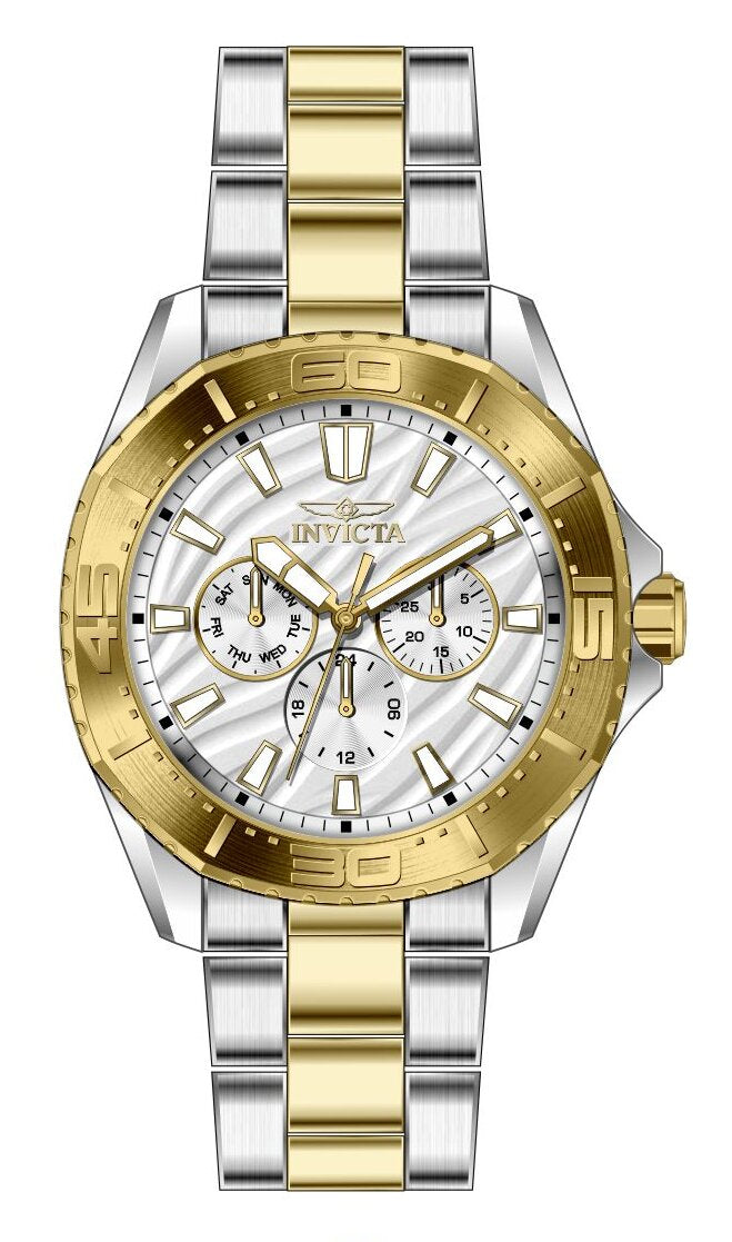 Band Material: Stainless Steel, Band Tone: Steel,Gold, Band Width: 22MM, Band Length: 180MM, Crown Type: Push, Case Material: Stainless Steel, Case Tone: Gold,Steel, Case Size [mm]: 43.5, Case Back: Solid, Material of Hands: Brass, Color of Hands: Gold,Luminous, Crystal Type: Mineral, Bezel Material: None, Dial Material: Brass, Dial Color: Silver, Dial Pattern: Embossed pattern .Purchasing these parts and having a non-authorized repair center open your watch voids all manufacturing warranties. Invicta cannot guarantee the quality standards of an altered timepiece, the standard 3-year limited warranty on Invicta timepieces shall be invalid if the timepiece is serviced at any time by an unauthorized repair center. This includes battery replacements, which must be done at an Invicta authorized repair center in order to maintain the eligibility of the warranty. Please follow the link below to learn more about Invicta's warranty.https://cdn.invictawatch.com/www/files/invicta-warranty-2018.pdf