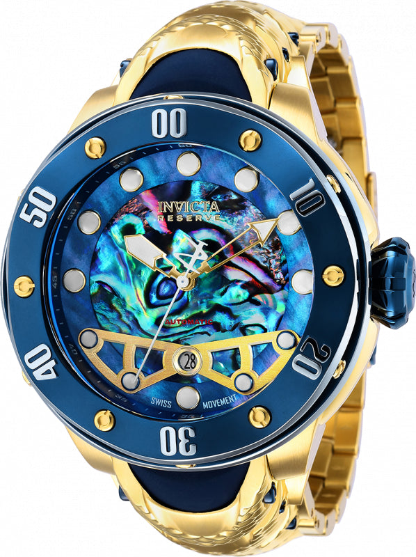 Band Material: Silicone, Stainless Steel, Band Tone: Blue, Gold, Band Width: 30.40MM, Band Length: 230MM, Crown Type: Screw Down, Case Material: Stainless Steel, Case Tone: Steel, Dark Blue, Gold, Case Size [mm]: 54, Color of Hands: Luminous, Gold, Crystal Type: Flame Fusion, Bezel Material: Stainless Steel, Dial Material: Abalone, Oyster, Mother of Pearl, Metal, Dial Color: Green, Gold, Blue .Purchasing these parts and having a non-authorized repair center open your watch voids all manufacturing warranties. Invicta cannot guarantee the quality standards of an altered timepiece, the standard 3-year limited warranty on Invicta timepieces shall be invalid if the timepiece is serviced at any time by an unauthorized repair center. This includes battery replacements, which must be done at an Invicta authorized repair center in order to maintain the eligibility of the warranty. Please follow the link below to learn more about Invicta's warranty.https://cdn.invictawatch.com/www/files/invicta-warranty-2018.pdf