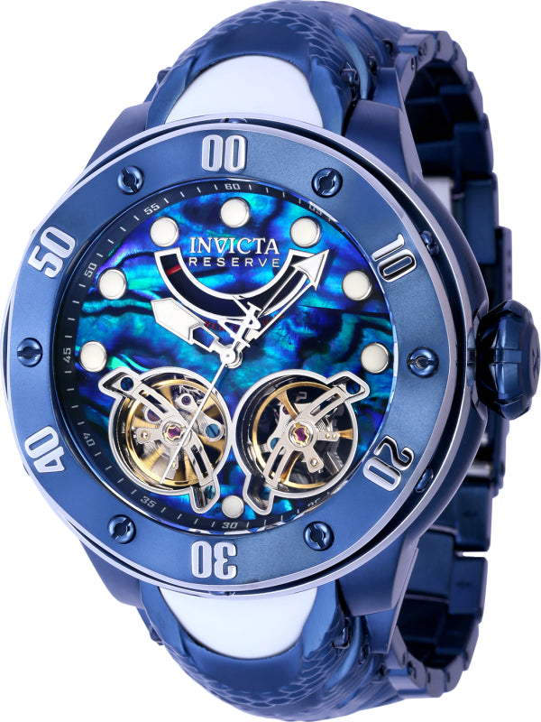 Band Material: Silicone, Stainless Steel, Band Tone: Dark Blue, White, Band Width: 30.4MM, Band Length: 210MM, Crown Type: Screw Down, Case Material: Stainless Steel, Case Tone: Steel, Dark Blue, Case Size [mm]: 54.0, Color of Hands: Luminous, Silver, Crystal Type: Flame Fusion, Bezel Material: Stainless Steel, Dial Material: Abalone, Oyster, Metal, Dial Color: Blue .Purchasing these parts and having a non-authorized repair center open your watch voids all manufacturing warranties. Invicta cannot guarantee the quality standards of an altered timepiece, the standard 3-year limited warranty on Invicta timepieces shall be invalid if the timepiece is serviced at any time by an unauthorized repair center. This includes battery replacements, which must be done at an Invicta authorized repair center in order to maintain the eligibility of the warranty. Please follow the link below to learn more about Invicta's warranty.https://cdn.invictawatch.com/www/files/invicta-warranty-2018.pdf