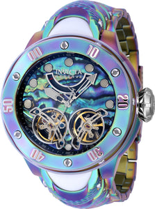 Band Material: Silicone, Stainless Steel, Band Tone: Iridescent, White, Band Width: 30.4MM, Band Length: 210MM, Crown Type: Screw Down, Case Material: Stainless Steel, Case Tone: Steel, Iridescent, Case Size [mm]: 54.0, Color of Hands: Luminous, Silver, Crystal Type: Flame Fusion, Bezel Material: Stainless Steel, Dial Material: Abalone, Oyster, Metal, Dial Color: Green, Silver, Blue, Black .Purchasing these parts and having a non-authorized repair center open your watch voids all manufacturing warranties. Invicta cannot guarantee the quality standards of an altered timepiece, the standard 3-year limited warranty on Invicta timepieces shall be invalid if the timepiece is serviced at any time by an unauthorized repair center. This includes battery replacements, which must be done at an Invicta authorized repair center in order to maintain the eligibility of the warranty. Please follow the link below to learn more about Invicta's warranty.https://cdn.invictawatch.com/www/files/invicta-warranty-2018.pdf