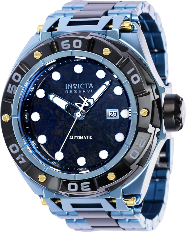 Band Material: Stainless Steel, Band Tone: Ice Blue, Black, Gold, Band Width: 32.0MM, Band Length: 210MM, Crown Type: Screw Down, Case Material: Stainless Steel, Case Tone: Ice Blue, Black, Gold, Case Size [mm]: 52.7, Color of Hands: Light Blue, Luminous, Crystal Type: Flame Fusion, Bezel Material: Stainless Steel, Dial Material: Carbon Fiber, Metal, Dial Color: Black .Purchasing these parts and having a non-authorized repair center open your watch voids all manufacturing warranties. Invicta cannot guarantee the quality standards of an altered timepiece, the standard 3-year limited warranty on Invicta timepieces shall be invalid if the timepiece is serviced at any time by an unauthorized repair center. This includes battery replacements, which must be done at an Invicta authorized repair center in order to maintain the eligibility of the warranty. Please follow the link below to learn more about Invicta's warranty.https://cdn.invictawatch.com/www/files/invicta-warranty-2018.pdf