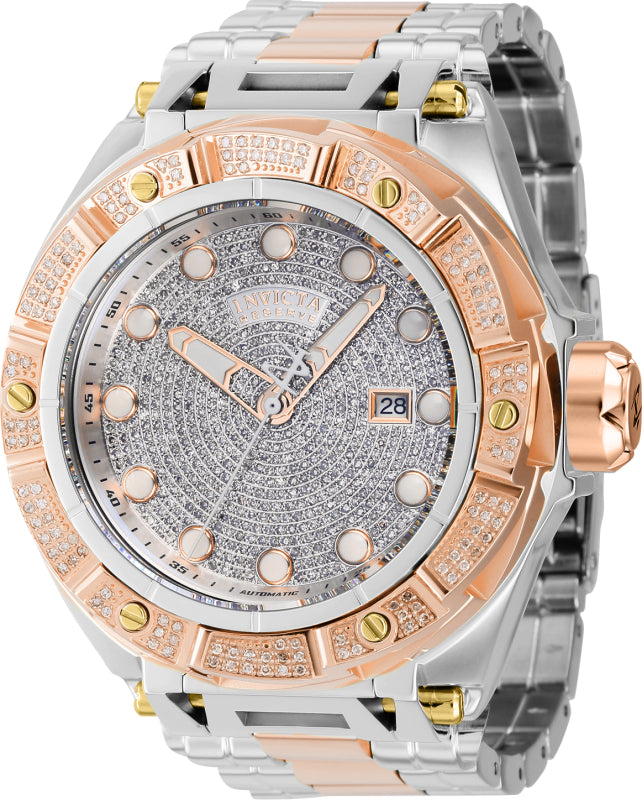 Band Material: Stainless Steel, Band Tone: Rose Gold, Gold, Steel, Band Width: 32.0MM, Band Length: 210MM, Crown Type: Screw Down, Case Material: Diamond, Stainless Steel, Case Tone: Steel, Rose Gold, Gold, Case Size [mm]: 52.7, Color of Hands: Luminous, Rose Gold, Crystal Type: Flame Fusion, Bezel Material: Diamond, Stainless Steel, Dial Material: Metal, Dial Color: Silver, White .Purchasing these parts and having a non-authorized repair center open your watch voids all manufacturing warranties. Invicta cannot guarantee the quality standards of an altered timepiece, the standard 3-year limited warranty on Invicta timepieces shall be invalid if the timepiece is serviced at any time by an unauthorized repair center. This includes battery replacements, which must be done at an Invicta authorized repair center in order to maintain the eligibility of the warranty. Please follow the link below to learn more about Invicta's warranty.https://cdn.invictawatch.com/www/files/invicta-warranty-2018.pdf