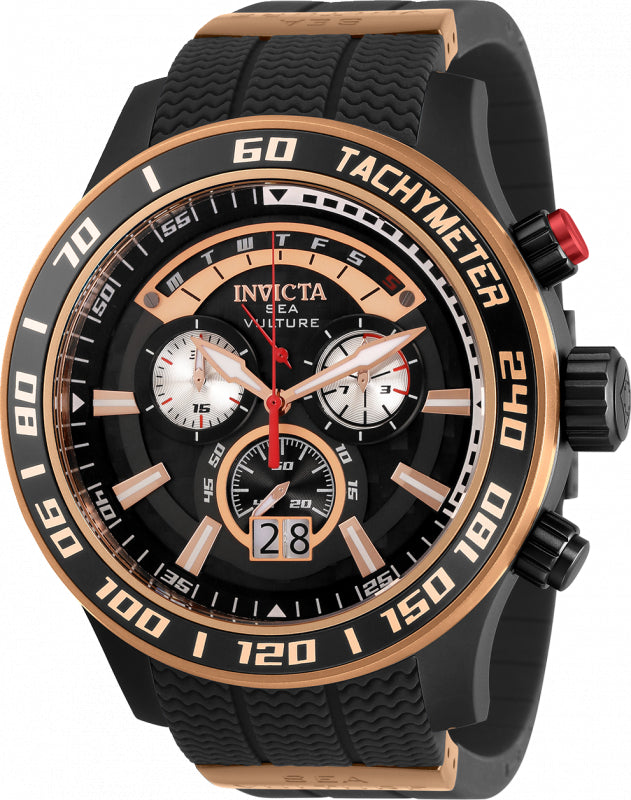 Band Material: Silicone, Band Tone: Black, Band Width: 26MM, Band Length: 240MM, Crown Type: Push, Case Material: Stainless Steel, Case Tone: Black, Rose Gold, Case Size [mm]: 54, Color of Hands: Luminous, Rose Gold, Crystal Type: Flame Fusion, Bezel Material: Stainless Steel, Dial Material: Carbon Fiber, Dial Color: Black .Purchasing these parts and having a non-authorized repair center open your watch voids all manufacturing warranties. Invicta cannot guarantee the quality standards of an altered timepiece, the standard 3-year limited warranty on Invicta timepieces shall be invalid if the timepiece is serviced at any time by an unauthorized repair center. This includes battery replacements, which must be done at an Invicta authorized repair center in order to maintain the eligibility of the warranty. Please follow the link below to learn more about Invicta's warranty.https://cdn.invictawatch.com/www/files/invicta-warranty-2018.pdf