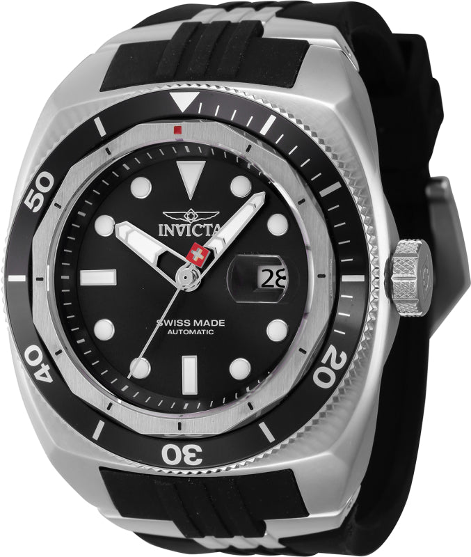 Band Material: Silicone, Stainless Steel, Band Tone: Black, Steel, Band Width: 33MM, Band Length: 210MM, Crown Type: Screw Down, Case Material: Aluminum, Stainless Steel, Case Tone: Steel, Black, Case Size [mm]: 52.00, Color of Hands: Luminous, Red, Silver, Crystal Type: Sapphire, Bezel Material: Aluminum, Stainless Steel, Dial Material: Metal, Dial Color: Black .Purchasing these parts and having a non-authorized repair center open your watch voids all manufacturing warranties. Invicta cannot guarantee the quality standards of an altered timepiece, the standard 3-year limited warranty on Invicta timepieces shall be invalid if the timepiece is serviced at any time by an unauthorized repair center. This includes battery replacements, which must be done at an Invicta authorized repair center in order to maintain the eligibility of the warranty. Please follow the link below to learn more about Invicta's warranty.https://cdn.invictawatch.com/www/files/invicta-warranty-2018.pdf