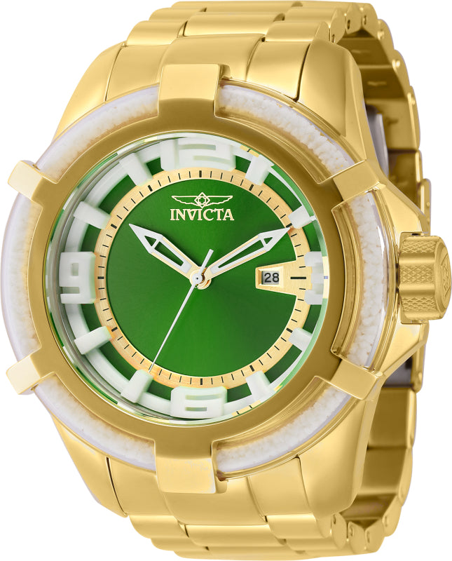Band Material: Stainless Steel, Band Tone: Gold, Band Width: 26MM, Band Length: 210MM, Crown Type: Screw Down, Case Material: Luminous, Stainless Steel, Case Tone: White, Gold, Case Size [mm]: 52.50, Color of Hands: Luminous, Gold, Crystal Type: Mineral, Bezel Material: Luminous, Stainless Steel, Dial Material: Metal, Dial Color: Green, Gold .Purchasing these parts and having a non-authorized repair center open your watch voids all manufacturing warranties. Invicta cannot guarantee the quality standards of an altered timepiece, the standard 3-year limited warranty on Invicta timepieces shall be invalid if the timepiece is serviced at any time by an unauthorized repair center. This includes battery replacements, which must be done at an Invicta authorized repair center in order to maintain the eligibility of the warranty. Please follow the link below to learn more about Invicta's warranty.https://cdn.invictawatch.com/www/files/invicta-warranty-2018.pdf