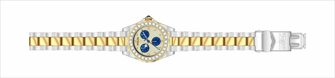 Individual Spare PARTS For Invicta Angel 28460, Band Material: Stainless Steel, Band Tone: Steel, Gold, Band Size (mm): 18, Band Length (mm): 215, Buckle Type: Diver, Clasp Type: Foldover, Safety, Crown Type Push, Case Material Stainless Steel, Case Tone Gold, Steel, Case Size (mm) 38, Case Back Solid, Material of Hands Metal, Color of Hands Blue, Luminous, Crystal Type Mineral, Bezel Material Stainless Steel, Dial Material Metal, Dial Color Blue, Pave, Dial Pattern NonePurchasing these parts and having a non-authorized repair center open your watch voids all manufacturing warranties. Invicta cannot guarantee the quality standards of an altered timepiece, the standard 3-year limited warranty on Invicta timepieces shall be invalid if the timepiece is serviced at any time by an unauthorized repair center. This includes battery replacements, which must be done at an Invicta authorized repair center in order to maintain the eligibility of the warranty. Please follow the link below to learn more about Invicta's warranty.https://cdn.invictawatch.com/www/files/invicta-warranty-2018.pdf
