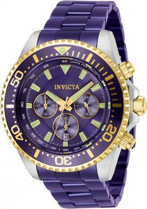 Individual Spare PARTS For Invicta Pro Diver 27479, Band Material Stainless Steel, Band Tone Purple, Band Width 22MM, Band Length 210MM, Buckle Type Fold over safety, Clasp Type Safety, Foldover, Crown Type Push, Case Material Stainless Steel, Case Tone Gold, Steel, Case Size (mm) 47, Case Back Solid, Material of Hands Metal, Color of Hands Gold, Luminous, Crystal Type Mineral, Bezel Material Stainless Steel, Dial Material Metal, Dial Color Purple, Dial Pattern SunrayPurchasing these parts and having a non-authorized repair center open your watch voids all manufacturing warranties. Invicta cannot guarantee the quality standards of an altered timepiece, the standard 3-year limited warranty on Invicta timepieces shall be invalid if the timepiece is serviced at any time by an unauthorized repair center. This includes battery replacements, which must be done at an Invicta authorized repair center in order to maintain the eligibility of the warranty. Please follow the link below to learn more about Invicta's warranty.https://cdn.invictawatch.com/www/files/invicta-warranty-2018.pdf