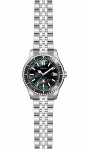 INVICTA Pro Diver Swiss Made Lady 34mm Stainless Steel Steel Black dial 505 Quartz , Band Material: Stainless Steel, Band Tone: Steel, Band Size [mm]: 16, Band Length [mm]: 190, Buckle Type: Fold over safety , Crown Type : Push, Case Material : Stainless Steel, Case Tone : Steel, Case Size (mm) : 34, Case Back : Solid, Material of Hands : Metal, Color of Hands : Silver,Luminous, Crystal Type : Flame Fusion, Bezel Material : Stainless Steel, Dial Material : Mother of Pearl, Dial Color : Black, Dial Pattern : None .Purchasing these parts and having a non-authorized repair center open your watch voids all manufacturing warranties. Invicta cannot guarantee the quality standards of an altered timepiece, the standard 3-year limited warranty on Invicta timepieces shall be invalid if the timepiece is serviced at any time by an unauthorized repair center. This includes battery replacements, which must be done at an Invicta authorized repair center in order to maintain the eligibility of the warranty. Please follow the link below to learn more about Invicta's warranty.https://cdn.invictawatch.com/www/files/invicta-warranty-2018.pdf