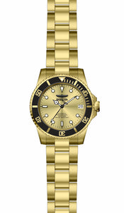 INVICTA Pro Diver Lady 36mm Stainless Steel Gold Gold dial NH35A Automatic , Band Material: Stainless Steel, Band Tone: Gold, Band Size [mm]: 18, Band Length [mm]: 190, Buckle Type: Fold over safety , Crown Type : Screw Down, Case Material : Stainless Steel, Case Tone : Gold, Case Size (mm) : 36, Case Back : Exhibition, Material of Hands : Metal, Color of Hands : Black,Luminous, Crystal Type : Mineral, Bezel Material : Stainless Steel, Dial Material : Metal, Dial Color : Gold, Dial Pattern : Sun-ray Finish .Purchasing these parts and having a non-authorized repair center open your watch voids all manufacturing warranties. Invicta cannot guarantee the quality standards of an altered timepiece, the standard 3-year limited warranty on Invicta timepieces shall be invalid if the timepiece is serviced at any time by an unauthorized repair center. This includes battery replacements, which must be done at an Invicta authorized repair center in order to maintain the eligibility of the warranty. Please follow the link below to learn more about Invicta's warranty.https://cdn.invictawatch.com/www/files/invicta-warranty-2018.pdf