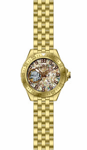 INVICTA Pro Diver Lady 36mm Stainless Steel Gold Beige dial NH38A Automatic , Band Material: Stainless Steel, Band Tone: Gold, Band Size [mm]: 16, Band Length [mm]: 200, Buckle Type: Fold over safety , Crown Type : Push, Case Material : Stainless Steel, Case Tone : Gold, Case Size (mm) : 36, Case Back : Exhibition, Material of Hands : Metal, Color of Hands : Brown,Luminous, Crystal Type : Flame Fusion, Bezel Material : Stainless Steel, Dial Material : Mother of Pearl,Abalone, Dial Color : Beige, Dial Pattern : None .Purchasing these parts and having a non-authorized repair center open your watch voids all manufacturing warranties. Invicta cannot guarantee the quality standards of an altered timepiece, the standard 3-year limited warranty on Invicta timepieces shall be invalid if the timepiece is serviced at any time by an unauthorized repair center. This includes battery replacements, which must be done at an Invicta authorized repair center in order to maintain the eligibility of the warranty. Please follow the link below to learn more about Invicta's warranty.https://cdn.invictawatch.com/www/files/invicta-warranty-2018.pdf