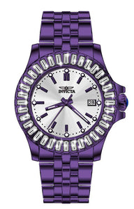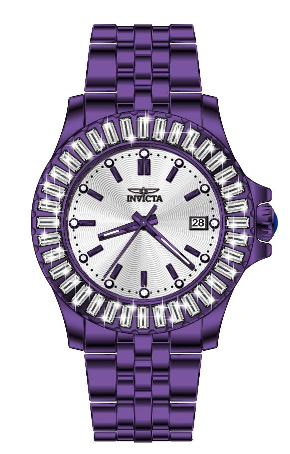 Band Material: Stainless Steel, Band Tone: Purple, Band Width: 20MM, Band Length: 200MM, Crown Type: Push, Case Material: Stainless Steel, Case Tone: Purple, Case Size [mm]: 38, Case Back: Solid, Material of Hands: Metal, Color of Hands: Purple, Crystal Type: Flame Fusion, Bezel Material: Stainless Steel, Dial Material: Metal, Dial Color: Silver, Dial Pattern: CD Pattern .Purchasing these parts and having a non-authorized repair center open your watch voids all manufacturing warranties. Invicta cannot guarantee the quality standards of an altered timepiece, the standard 3-year limited warranty on Invicta timepieces shall be invalid if the timepiece is serviced at any time by an unauthorized repair center. This includes battery replacements, which must be done at an Invicta authorized repair center in order to maintain the eligibility of the warranty. Please follow the link below to learn more about Invicta's warranty.https://cdn.invictawatch.com/www/files/invicta-warranty-2018.pdf
