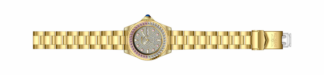 Band Material: Stainless Steel, Band Tone: Gold, Band Width: 18MM, Band Length: 195MM, Crown Type: Push, Case Material: Stainless Steel, Case Tone: Gold, Case Size [mm]: 38, Case Back: Solid, Material of Hands: Metal, Color of Hands: Gold,Luminous, Crystal Type: Mineral, Bezel Material: Stainless Steel, Dial Material: Metal, Dial Color: Gold,Pave, Dial Pattern: None .Purchasing these parts and having a non-authorized repair center open your watch voids all manufacturing warranties. Invicta cannot guarantee the quality standards of an altered timepiece, the standard 3-year limited warranty on Invicta timepieces shall be invalid if the timepiece is serviced at any time by an unauthorized repair center. This includes battery replacements, which must be done at an Invicta authorized repair center in order to maintain the eligibility of the warranty. Please follow the link below to learn more about Invicta's warranty.https://cdn.invictawatch.com/www/files/invicta-warranty-2018.pdf