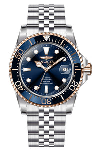 INVICTA Pro Diver Men 42mm Stainless Steel Steel Blue dial NH35 Automatic , Band Material: Stainless Steel, Band Tone: Steel, Band Size [mm]: 22, Band Length [mm]: 185, Buckle Type: Fold over safety , Crown Type : Screw Down, Case Material : Stainless Steel, Case Tone : Steel, Case Size (mm) : 42, Case Back : Exhibition, Material of Hands : Metal, Color of Hands : Rose Gold, Crystal Type : Flame Fusion, Bezel Material : Stainless Steel, Dial Material : Metal, Dial Color : Blue, Dial Pattern : Sun-ray Finish .Purchasing these parts and having a non-authorized repair center open your watch voids all manufacturing warranties. Invicta cannot guarantee the quality standards of an altered timepiece, the standard 3-year limited warranty on Invicta timepieces shall be invalid if the timepiece is serviced at any time by an unauthorized repair center. This includes battery replacements, which must be done at an Invicta authorized repair center in order to maintain the eligibility of the warranty. Please follow the link below to learn more about Invicta's warranty.https://cdn.invictawatch.com/www/files/invicta-warranty-2018.pdf