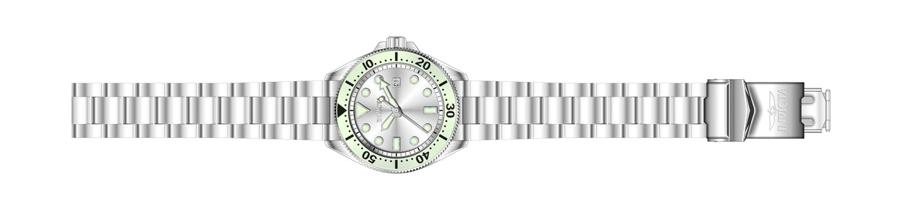 INVICTA Pro Diver Men 42.00mm Stainless Steel Steel Silver dial PC32A Quartz , Band Material: Stainless Steel, Band Tone: Steel, Band Size [mm]: 20, Band Length [mm]: 205, Buckle Type: Fold over safety , Crown Type : Push, Case Material : Stainless Steel, Case Tone : Steel, Case Size (mm) : 42, Case Back : Solid, Material of Hands : Metal, Color of Hands : Silver,Luminous, Crystal Type : Flame Fusion, Bezel Material : Stainless Steel, Dial Material : Metal, Dial Color : Silver, Dial Pattern : Sun-ray Finish .Purchasing these parts and having a non-authorized repair center open your watch voids all manufacturing warranties. Invicta cannot guarantee the quality standards of an altered timepiece, the standard 3-year limited warranty on Invicta timepieces shall be invalid if the timepiece is serviced at any time by an unauthorized repair center. This includes battery replacements, which must be done at an Invicta authorized repair center in order to maintain the eligibility of the warranty. Please follow the link below to learn more about Invicta's warranty.https://cdn.invictawatch.com/www/files/invicta-warranty-2018.pdf