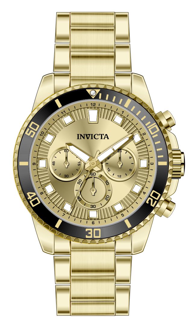 Band Material: Stainless Steel, Band Tone: Gold, Band Width: 22MM, Band Length: 187MM, Crown Type: Push, Case Material: Stainless Steel, Case Tone: Gold, Case Size [mm]: 45, Crystal Type: Flame Fusion, Dial Material: Brass, Dial Color: Gold .Purchasing these parts and having a non-authorized repair center open your watch voids all manufacturing warranties. Invicta cannot guarantee the quality standards of an altered timepiece, the standard 3-year limited warranty on Invicta timepieces shall be invalid if the timepiece is serviced at any time by an unauthorized repair center. This includes battery replacements, which must be done at an Invicta authorized repair center in order to maintain the eligibility of the warranty. Please follow the link below to learn more about Invicta's warranty.https://cdn.invictawatch.com/www/files/invicta-warranty-2018.pdf