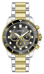 Band Material: Stainless Steel, Band Tone: Steel,Gold, Band Width: 22MM, Band Length: 187MM, Crown Type: Push, Case Material: Stainless Steel, Case Tone: Steel, Case Size [mm]: 45, Crystal Type: Flame Fusion, Dial Material: Brass, Dial Color: Black .Purchasing these parts and having a non-authorized repair center open your watch voids all manufacturing warranties. Invicta cannot guarantee the quality standards of an altered timepiece, the standard 3-year limited warranty on Invicta timepieces shall be invalid if the timepiece is serviced at any time by an unauthorized repair center. This includes battery replacements, which must be done at an Invicta authorized repair center in order to maintain the eligibility of the warranty. Please follow the link below to learn more about Invicta's warranty.https://cdn.invictawatch.com/www/files/invicta-warranty-2018.pdf