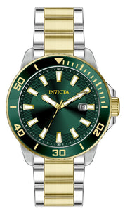 Band Material: Stainless Steel, Band Tone: Steel,Gold, Band Width: 22MM, Band Length: 191MM, Crown Type: Push, Case Material: Stainless Steel, Case Tone: Steel, Case Size [mm]: 45, Crystal Type: Flame Fusion, Dial Material: Brass, Dial Color: Green .Purchasing these parts and having a non-authorized repair center open your watch voids all manufacturing warranties. Invicta cannot guarantee the quality standards of an altered timepiece, the standard 3-year limited warranty on Invicta timepieces shall be invalid if the timepiece is serviced at any time by an unauthorized repair center. This includes battery replacements, which must be done at an Invicta authorized repair center in order to maintain the eligibility of the warranty. Please follow the link below to learn more about Invicta's warranty.https://cdn.invictawatch.com/www/files/invicta-warranty-2018.pdf