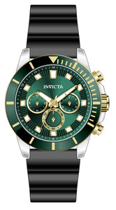 Band Material: Silicone, Band Tone: Black, Band Width: 22MM, Band Length: 225MM, Crown Type: Push, Case Material: Stainless Steel, Case Tone: Steel, Case Size [mm]: 45, Crystal Type: Flame Fusion, Dial Material: Brass, Dial Color: Green .Purchasing these parts and having a non-authorized repair center open your watch voids all manufacturing warranties. Invicta cannot guarantee the quality standards of an altered timepiece, the standard 3-year limited warranty on Invicta timepieces shall be invalid if the timepiece is serviced at any time by an unauthorized repair center. This includes battery replacements, which must be done at an Invicta authorized repair center in order to maintain the eligibility of the warranty. Please follow the link below to learn more about Invicta's warranty.https://cdn.invictawatch.com/www/files/invicta-warranty-2018.pdf