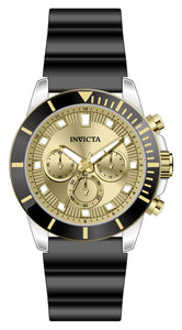 Band Material: Silicone, Band Tone: Black, Band Width: 22MM, Band Length: 225MM, Crown Type: Push, Case Material: Stainless Steel, Case Tone: Steel, Case Size [mm]: 45, Crystal Type: Flame Fusion, Dial Material: Brass, Dial Color: Gold .Purchasing these parts and having a non-authorized repair center open your watch voids all manufacturing warranties. Invicta cannot guarantee the quality standards of an altered timepiece, the standard 3-year limited warranty on Invicta timepieces shall be invalid if the timepiece is serviced at any time by an unauthorized repair center. This includes battery replacements, which must be done at an Invicta authorized repair center in order to maintain the eligibility of the warranty. Please follow the link below to learn more about Invicta's warranty.https://cdn.invictawatch.com/www/files/invicta-warranty-2018.pdf