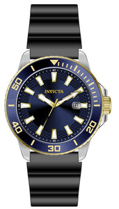 Band Material: Silicone, Band Tone: Black, Band Width: 22MM, Band Length: 225MM, Crown Type: Push, Case Material: Stainless Steel, Case Tone: Steel, Case Size [mm]: 45, Crystal Type: Flame Fusion, Dial Material: Brass, Dial Color: Blue .Purchasing these parts and having a non-authorized repair center open your watch voids all manufacturing warranties. Invicta cannot guarantee the quality standards of an altered timepiece, the standard 3-year limited warranty on Invicta timepieces shall be invalid if the timepiece is serviced at any time by an unauthorized repair center. This includes battery replacements, which must be done at an Invicta authorized repair center in order to maintain the eligibility of the warranty. Please follow the link below to learn more about Invicta's warranty.https://cdn.invictawatch.com/www/files/invicta-warranty-2018.pdf